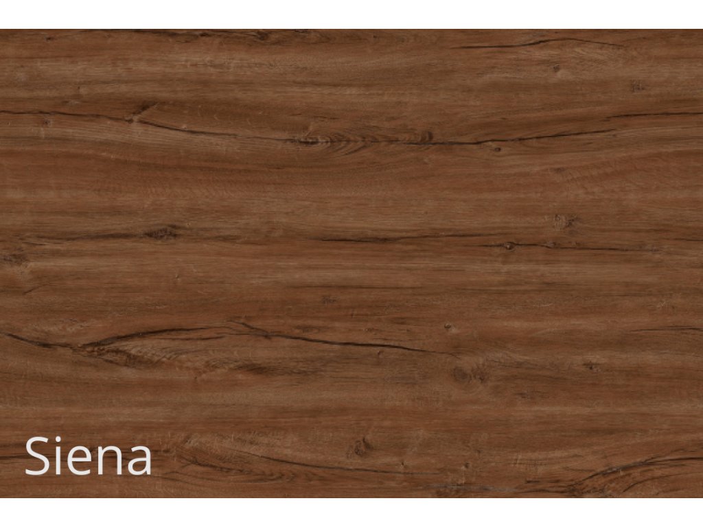 Dekor Siena působí hřejivě, výrazně a autenticky. Je to tmavší dřevodekor, dub antik, s hlubokou strukturou a suky, který evokuje přírodní masiv a tradiční truhlářskou práci. Hodí se do interiérů s výrazným charakterem – od rustikálního po industriální styl.