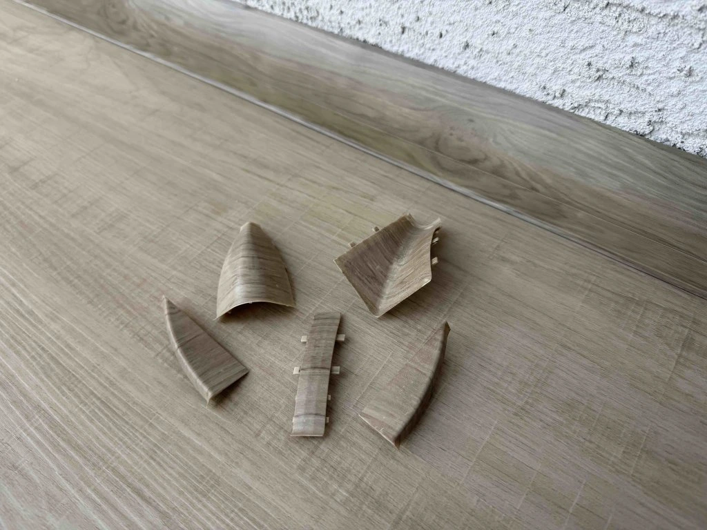 Vnitřní roh Parma umožňuje snadné a estetické spojení podlahových lišt v rozích místnosti a vytváří plynulý přechod bez viditelných nedokonalostí.