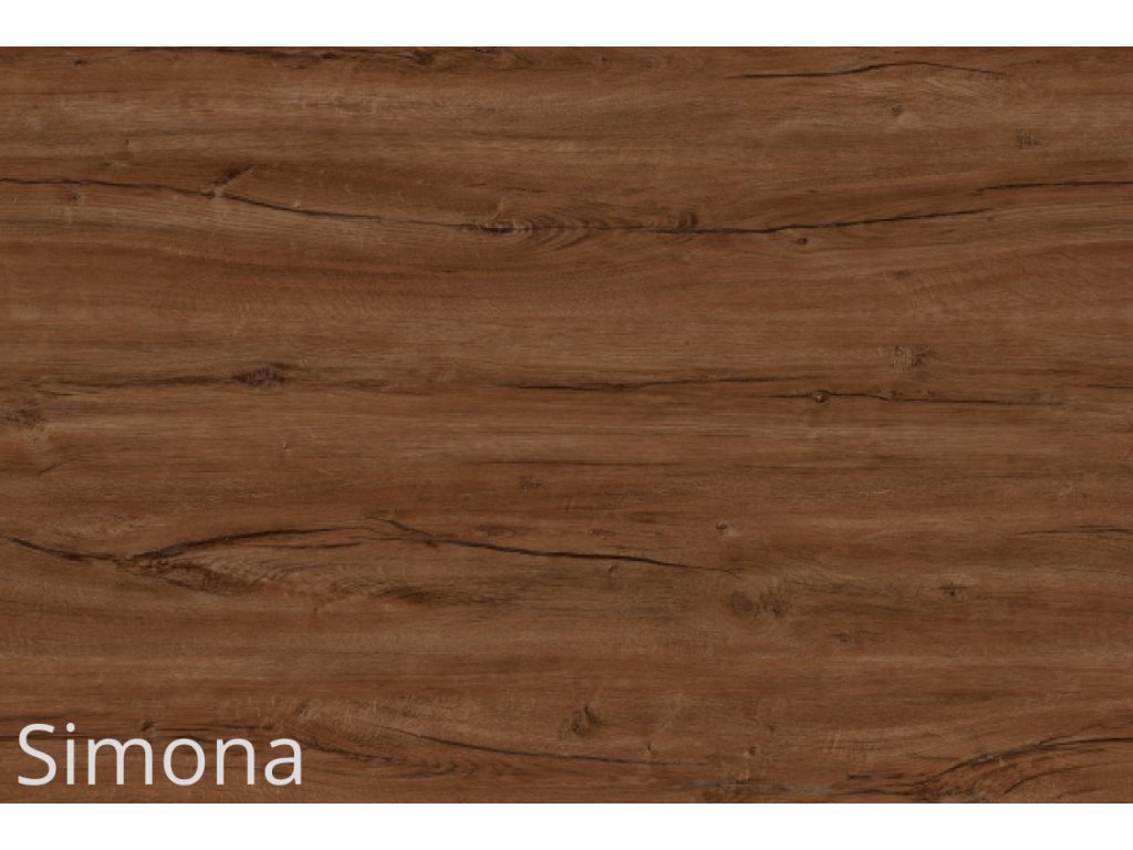Dekor Simona působí hřejivě, výrazně a autenticky. Je to tmavší dřevodekor, dub antik, s hlubokou strukturou a suky, který evokuje přírodní masiv a tradiční truhlářskou práci. Hodí se do interiérů s výrazným charakterem – od rustikálního po industriální styl.